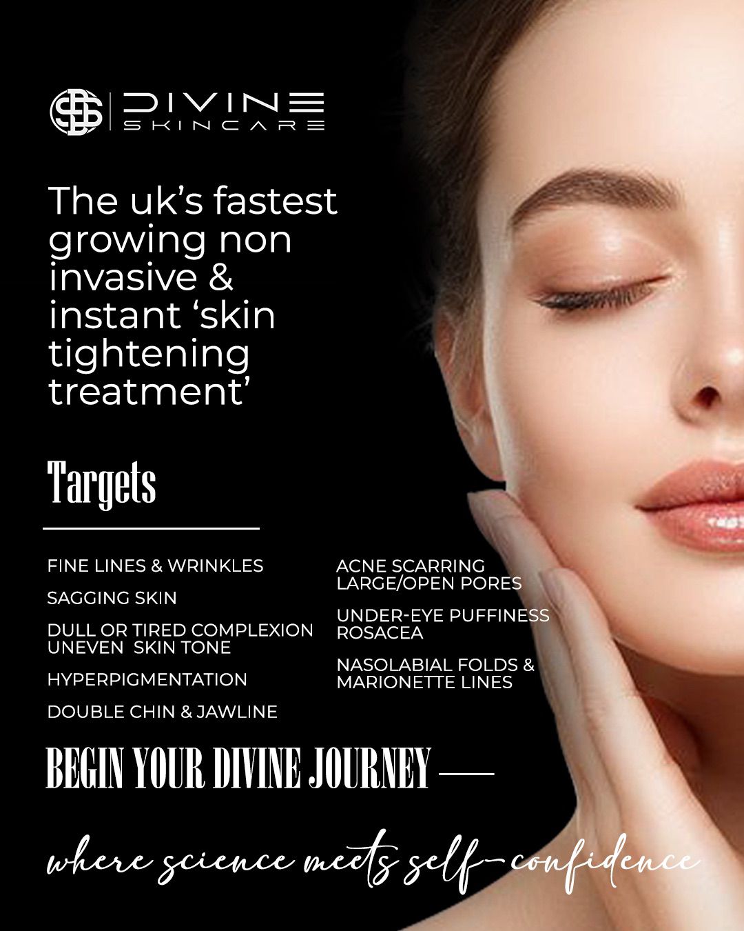 Loved by salons for its dramatic tightening effect, Divine Skincare’s signature treatment delivers visibly firmer, smoother, brighter skin in just one session.
